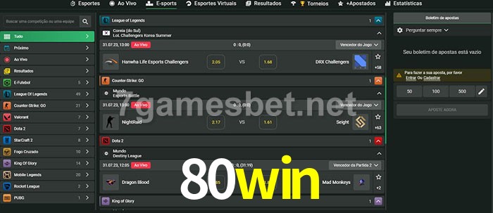 A aposta 80win oferece aos jogadores a experiência mais conveniente de apostas em eSports!